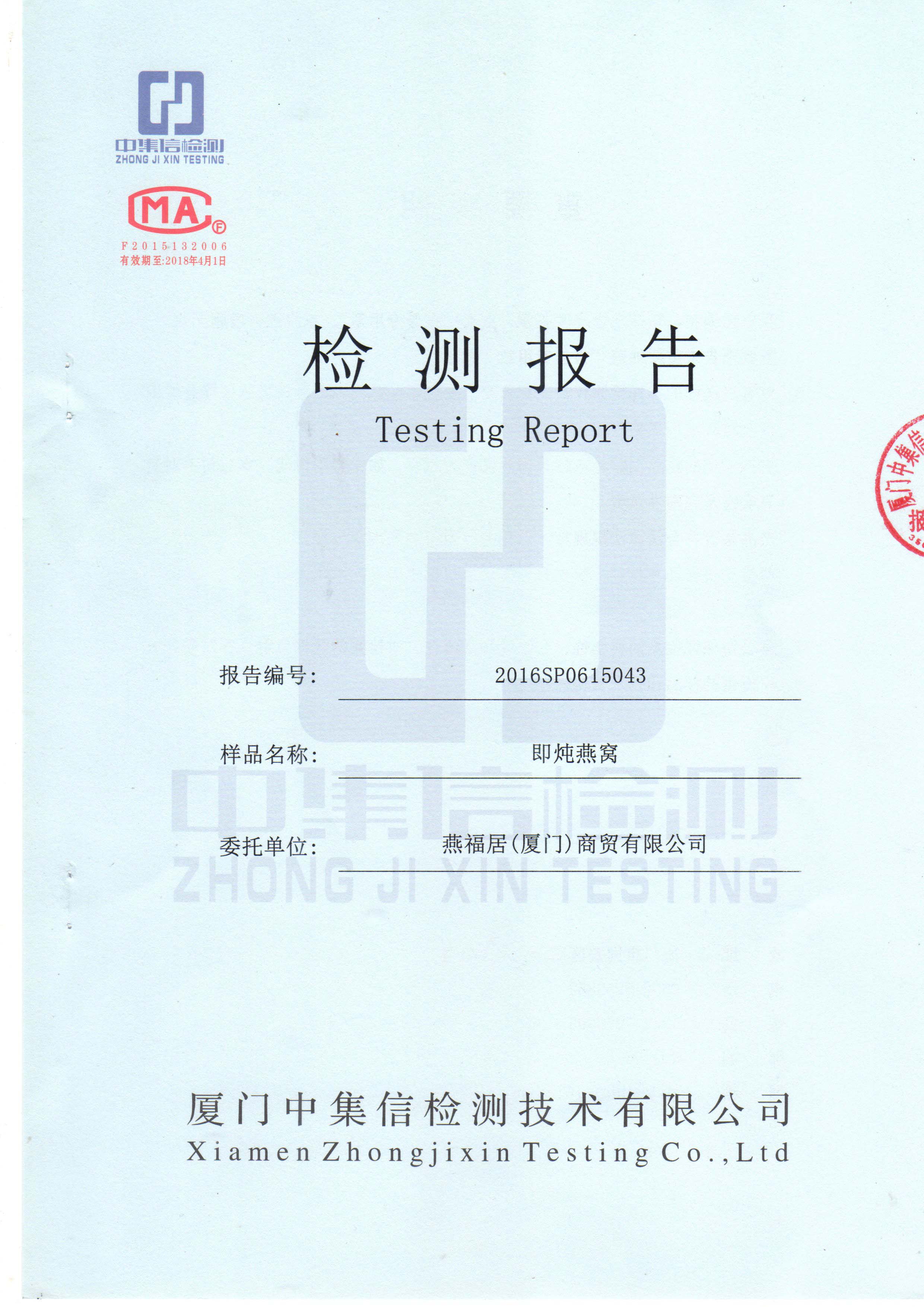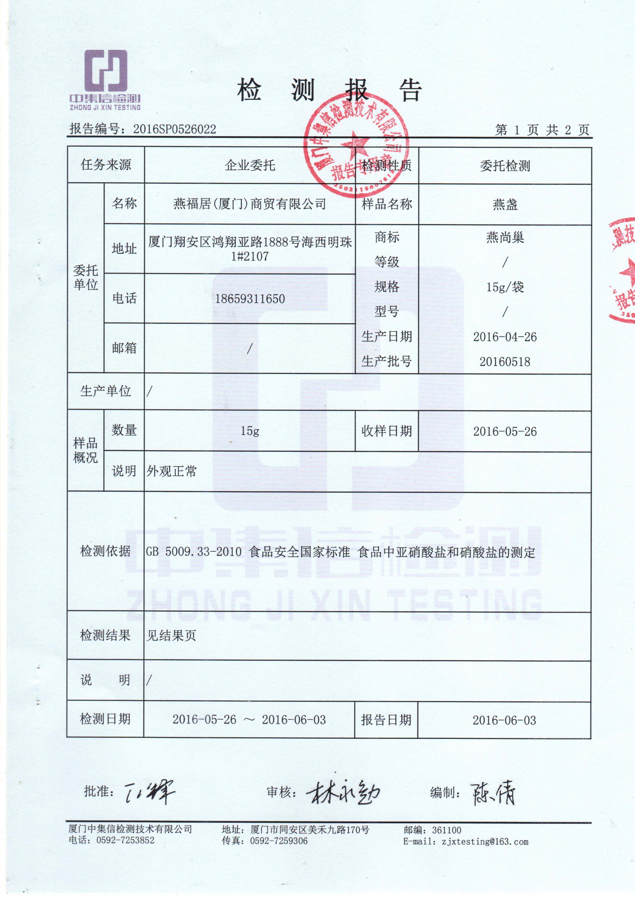 即燉燕窩檢測報告