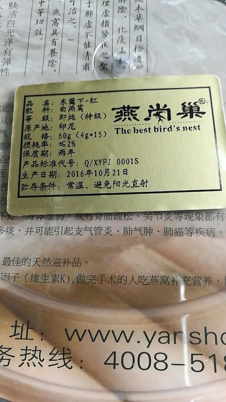 近期,有消費者打電話詢問怎么鑒別自己購買的燕窩是燕尚巢品牌燕窩(可能該消費者發現燕窩門店拿三無產品冒充燕尚巢品牌燕窩出售)在此燕尚巢鄭重聲明:燕尚巢燕窩燕盞禮盒產品出庫之前都有防偽標簽,禮盒背面右下角統一都有產品標簽,產品標簽上印有燕尚巢LOGO、品名、等級、規格、產品標準代號、生產日期、保質期!而且我們的加盟商、代理商門店內都會有公司的授權銅牌與中國平安保險公司承保的銅牌!同時請消費者認準“燕尚巢”商標,我們將加大研發力度,持續為消費者提供“最便捷”、“最安全”的燕窩!